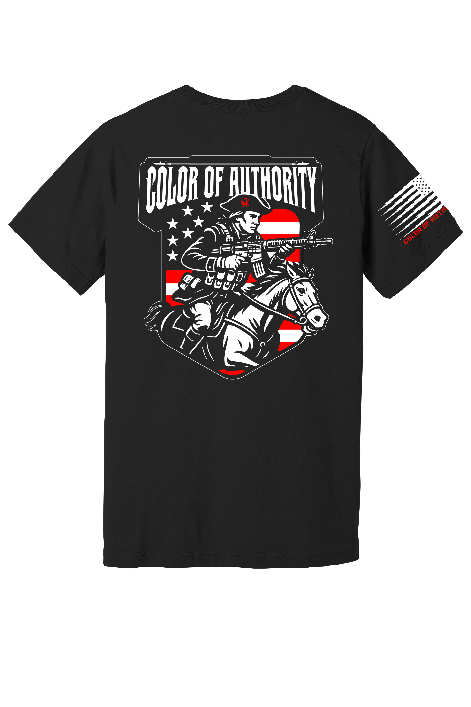 Featuring a modern reimagining of a revolutionary warrior riding forward with purpose, this design is for those who understand that freedom is defended, not given.